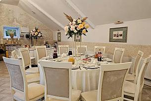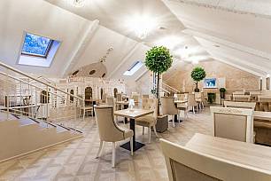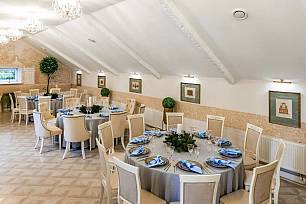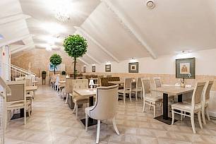 Ресторанный комплекс отеля включает в себя три современных ресторанных зала: Классический, Греческий и Французский, а также VIP-зал, караоке, кальянная и летнее кафе-парк. Осуществляются выездное ресторанное обслуживание (кейтеринг).