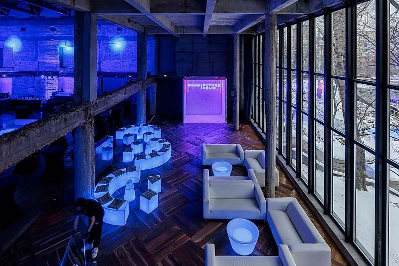 Гостей LOFT#8 встречает двухуровневый WELCOME HALL, который используется как зона сбора, welcome‑фуршета и регистрации. Здесь предусмотрен стационарный гардероб, высокий потолок и панорамное остекление, за счёт чего входная зона сразу производит впечатление большого городского event‑пространства. На втором уровне можно организовать VIP‑балкон, лаунж или дополнительные активности, а при необходимости Welcome Hall и Main Hall объединяются в единую площадку для крупного мероприятия.