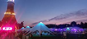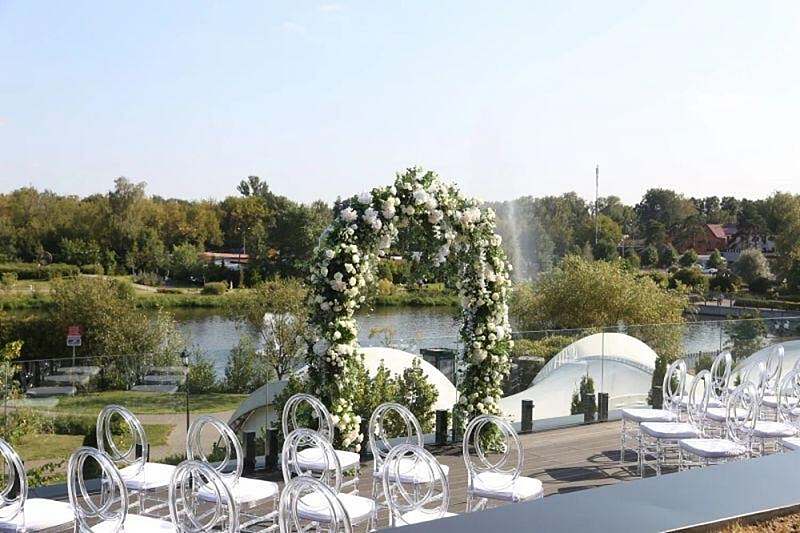 Miraclub — популярная площадка для свадеб благодаря сочетанию панорамного зала и природного окружения. Для молодожёнов здесь доступна видовая площадка для выездной регистрации с видом на реку, зона welcome с фуршетом, а затем торжественный банкет в белом зале с танцполом и сценой.