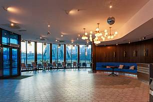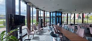 В основе комплекса — панорамный банкетный зал, который вмещает от 50 до 120 гостей при классической банкетной рассадке. Зал работает по схеме «аренда + банкет», имеет отдельный вход, танцпол, сцену, ТВ-экраны и профессиональное оборудование, поэтому подходит как для камерных семейных праздников, так и для масштабных мероприятий с шоу-программой.