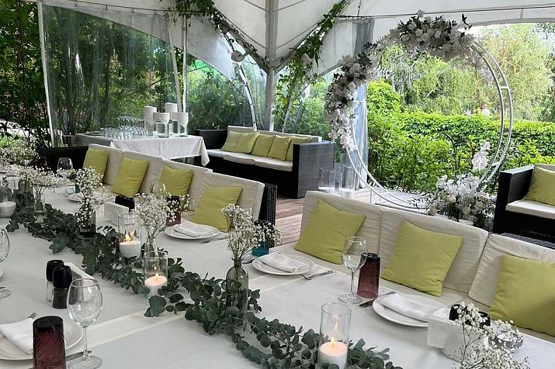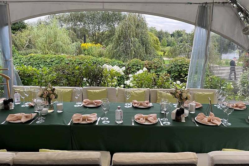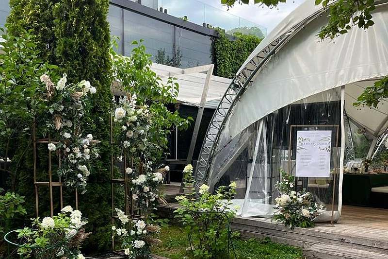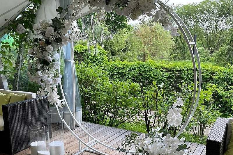 Интерьер в светлых тонах и живая зелень идеально подходят для любых концепций оформления — от классики до минимализма; есть пространство для установки арки, фото‑зон и размещения артистов. Гости высоко оценивают атмосферу, кухню и обслуживание, что важно для свадебных проектов и последующих рекомендаций.