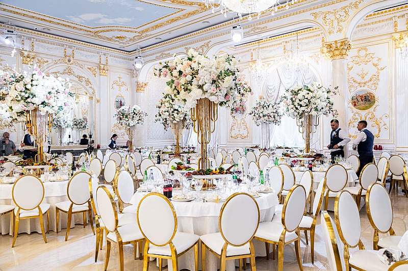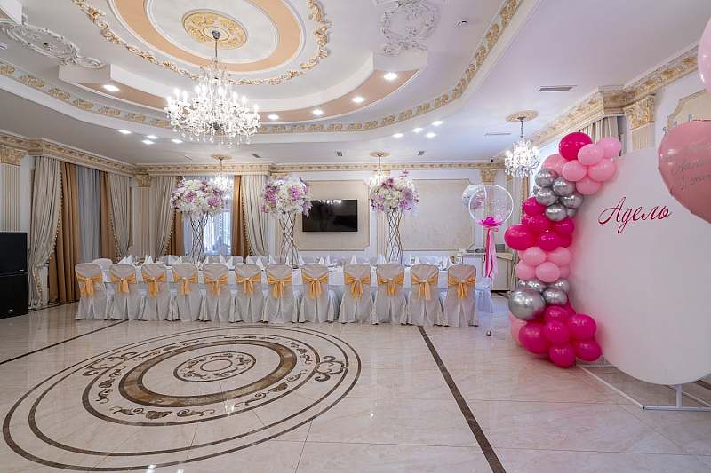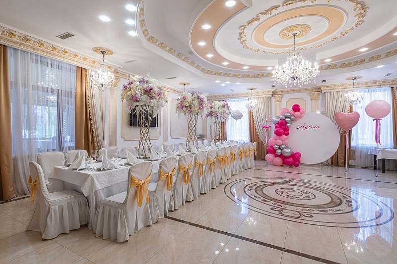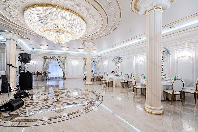 Здесь три просторных зала, выполненных в парадном дворцовом стиле: колонны, позолота, изысканная лепнина и тяжелые хрустальные люстры. «Большой зал» рассчитан на 400 персон, позволяя провести пышное торжество. «Малый зал» идеально подходит для семейных праздников, вмещая до 120 гостей. Имеет отдельный вход, гардероб и парковку. Фуршетный зал служит отличной welcome-зоной, где гости могут насладиться напитками и закусками в приятной атмосфере.