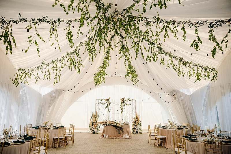 Летний шатёр клуба «Капитан» — решение для тех, кто мечтает о празднике на природе с ощущением приватности и загородного курорта. Шатёр подходит для банкетов и свадеб на 30–60 гостей (возможна посадка до примерно 80 человек), что делает его идеальным вариантом для камерных торжеств и семейных праздников в кругу близких. Белый текстиль, лёгкая конструкция и возможность декора в любом стиле позволяют оформить пространство под классическую, эко, рустик или минималистичную свадьбу.