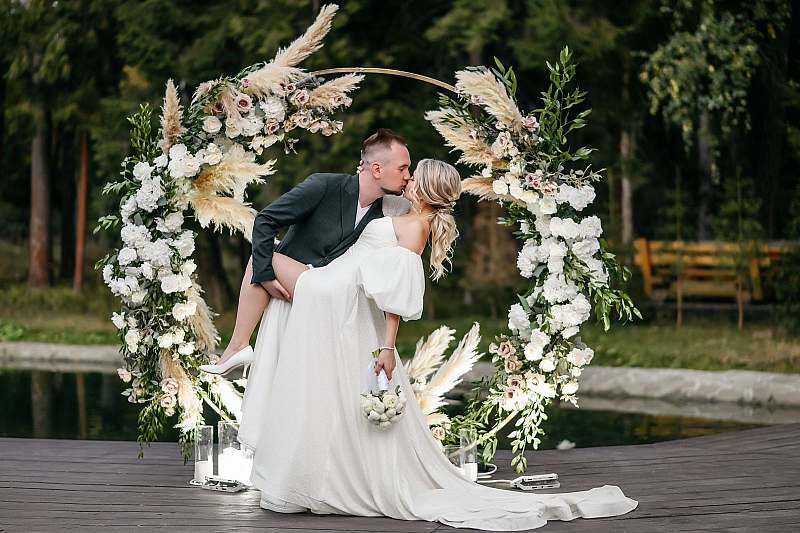 Номер для молодоженов мы предоставим со скидкой 50%, а остальных гостей с комфортом разместим в коттеджах, места хватит для 40 человек.