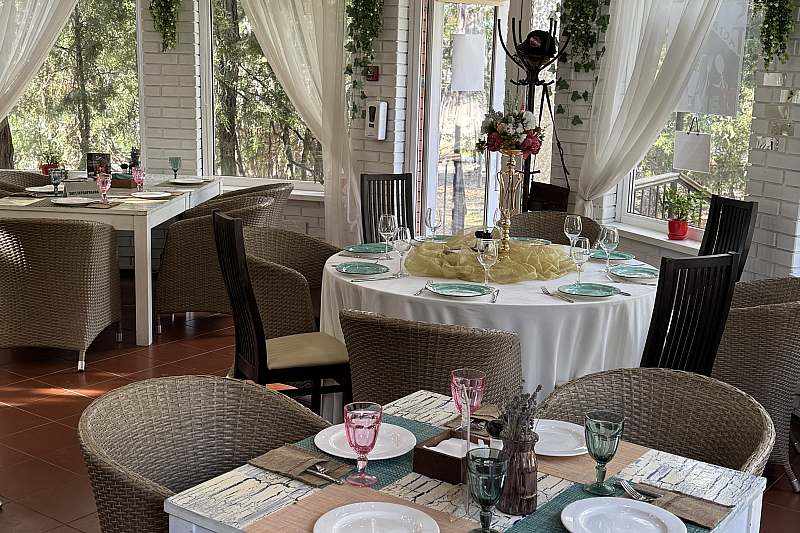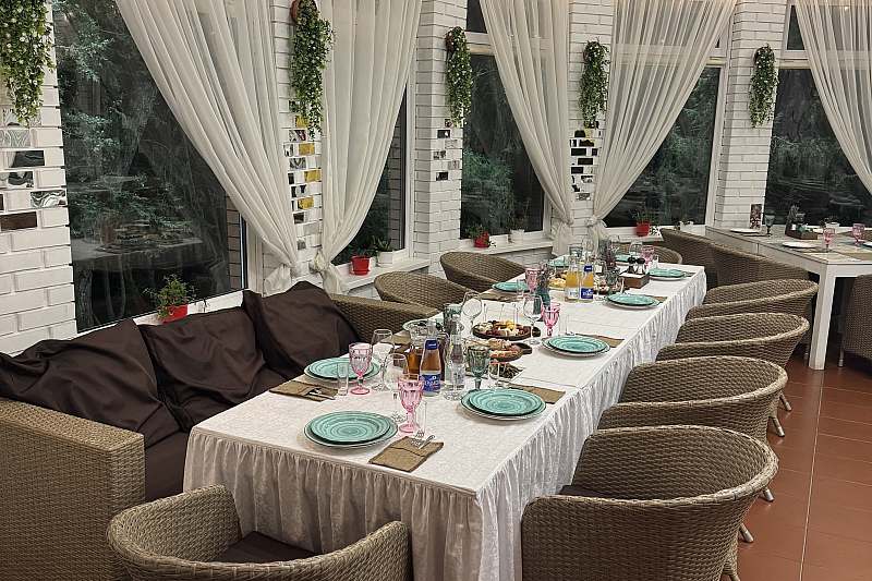 Уютный, светлый зал на 40 гостей банкетной рассадкой, с панорамными окнами, свежими продуктами и авторской кухней создаст атмосферу тепла и роскоши для незабываемых праздников в поселке Орджоникидзе.