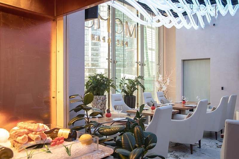 Отдельного внимания заслуживает Светлый зал до 25 персон с открытой кухней, raw-баром и панорамой на город.