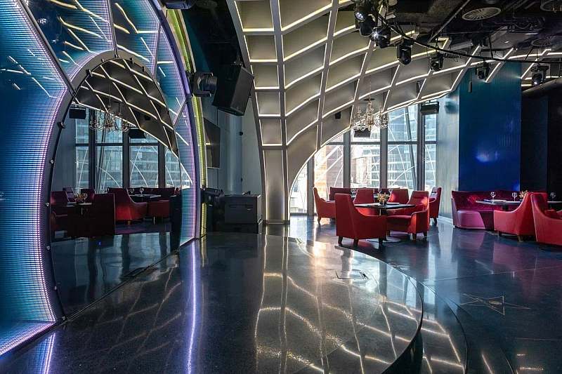 Экран во всю стену, профессиональное техническое оснащение, открытый бар, потолки до 5 метров высотой и панорамный вид на визитную карточку города – Москва Сити – здесь есть все необходимое для мероприятий на высоком уровне.