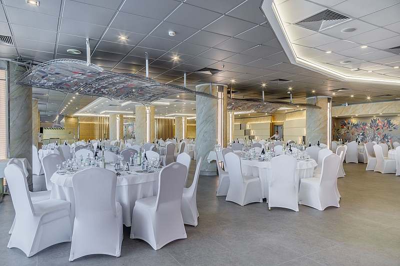 Грандиозный зал ресторана «Бета» площадью 600 м² - это воплощение изящной простоты и тепла гостеприимства, где каждая деталь создана для праздника. Изящная палитра бежевых и серебристых тонов наполняет пространство светом и уютом, создавая гармоничный фон для любого Вашего мероприятия! Будь то долгожданная свадьба, масштабный корпоративный праздник или трогательный юбилей — зал легко трансформируется под Ваши задачи.