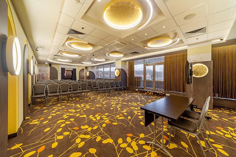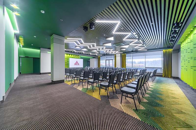 Зал «ЭКСПО» - это уникальное пространство площадью 443 м², где каждая деталь подчеркивает его статус, позволит Вашему событию занять достойное обрамление!