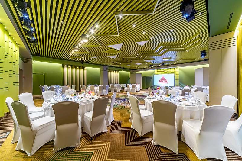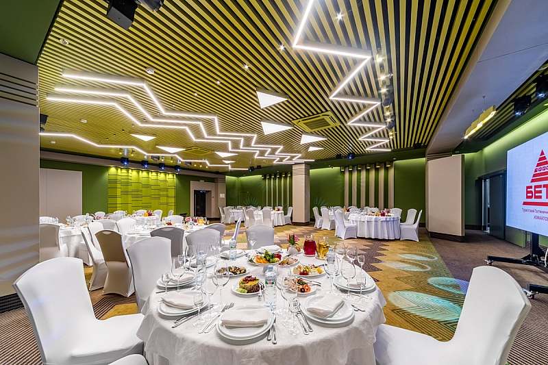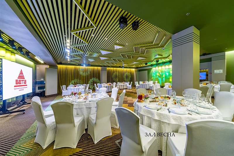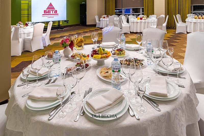 В гостинице «Бета» к услугам гостей представлены банкетные залы вместимостью от 10 до 300 персон, оптимальные для проведения крупных корпоративных мероприятий, торжественных банкетов и свадеб, а также более камерных детских праздников, дней рождения и юбилеев в семейном кругу.