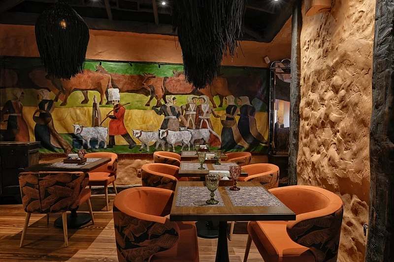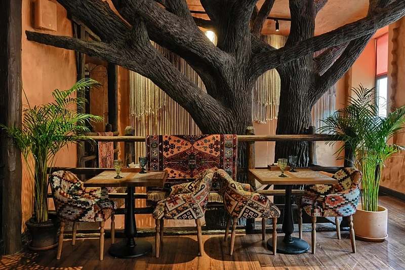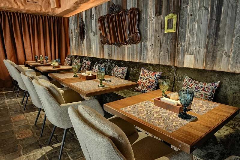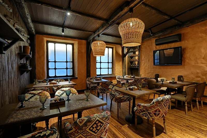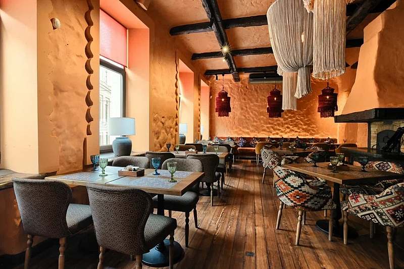 Интерьер «ДеДа Хинкали» оформлен в тёплых, уютных тонах с деталями, которые напоминают о гостеприимной Грузии: дерево, текстиль, элементы национального декора. В зале комфортно и днём, и вечером, а за счёт близкого расстояния между столами создаётся ощущение живого, праздничного пространства. Такая атмосфера особенно подходит для семейных праздников, где важны не только блюда, но и ощущение «как дома», когда за общим столом собираются несколько поколений.