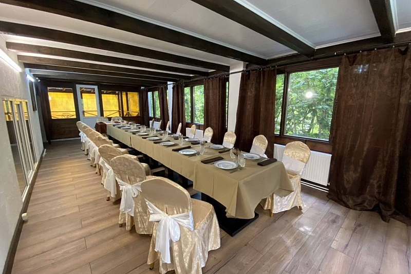 Аренда панорамной веранды — ориентировочно 10 000 рублей в день, депозит на мероприятие — около 30 000 рублей.