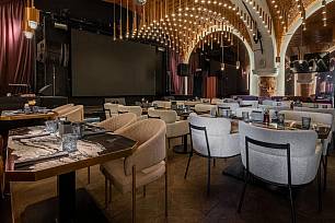 Панорамный ресторан для банкета Краснодар расположился на Большой Дмитровке, одной из самых фешенебельных улиц столицы. Огромные панорамные окна, выходящие на эту оживленную улицу, задают тон дизайну помещения, оформленного в стиле loft. Брутальность и минимализм интерьера подчеркивает хрустальная воздушная люстра, столешницы из натурального дерева придают уют.