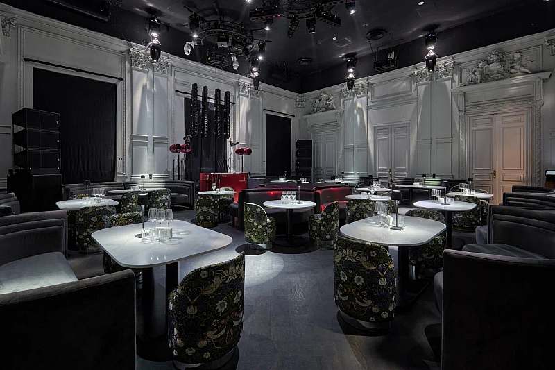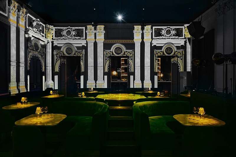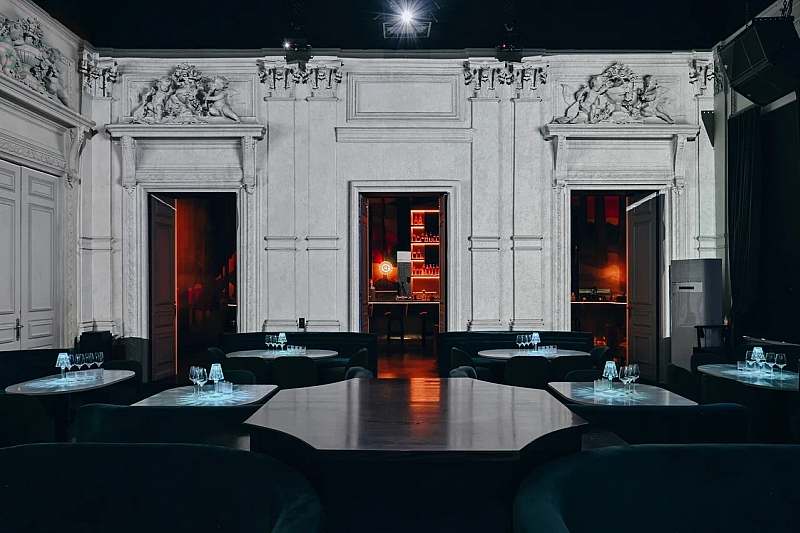 Основной зал площадью около 104 кв. м сохранил исторические барельефы и архитектурные элементы особняка, которые дополняет современная видеоинсталляция. Зал рассчитан примерно на 70 гостей в формате банкета и до 120 человек на фуршет и подойдёт для камерных корпоративов, деловых мероприятий и дней рождения с шоу‑программой. Главная особенность — технический комплекс с 3D‑мэппингом и сценой в формате 360°, когда проекции на трёх стенах и свет синхронно работают с музыкой и сценарием вечера. Это позволяет мгновенно менять визуальные декорации и создавать уникальный мультимедийный опыт для гостей.