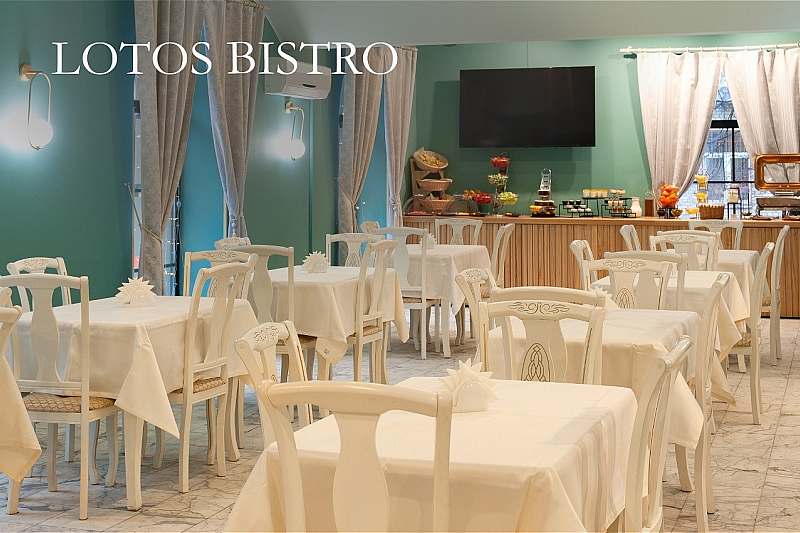 - Основной зал LOTOS BISTRO — идеальное место для обеда в деловом стиле или неспешного ужина. Выбирайте из разнообразия a-la carte-меню, наслаждайтесь аппетитными ланчами. Это также отличное решение для приема туристических групп. Зал площадью 80 кв. м., вместимость до 60 чел.