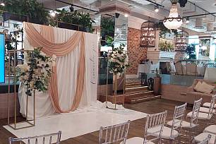 Зал «ЭКСПО» площадью 443 м² — пространство для событий, которым нужно подчеркнуть статус и масштаб. Высокие потолки, величественные колонны и тёплая палитра бежевых оттенков создают атмосферу современной классики, а благодаря площади зал комфортно подходит для крупных корпоративов, конференций, презентаций и свадебных банкетов до 200 гостей.