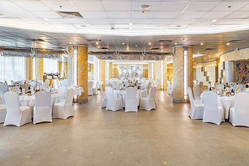 Грандиозный зал ресторана «Бета» площадью 600 м² — самый крупный банкетный зал гостиницы Бета Измайлово. Светлая палитра бежевых и серебристых тонов, большое количество света и возможность гибкой расстановки столов позволяют проводить здесь масштабные свадьбы, корпоративные праздники и вечерние приёмы. Пространство легко адаптируется под разные сценарии — от классического банкета до вечера с танцполом и сценой.